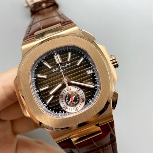 Patek Philippe Nautilus 5980/R Chronograph Rose Gold on 904L Steel Case in Brown Dial (1:1Super Clone)