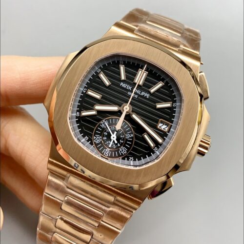Patek Philippe Nautilus 5980/R Rose Gold 904L Steel Case in Black Dial (1:1Super Clone)